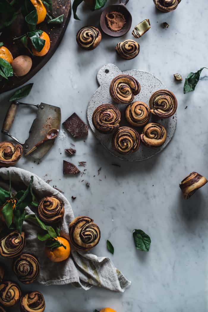 So, about these swirly chocolatey brioche buns. I saw these on Pinterest a couple weeks ago and knew I had to make them because, well, look at them. The swirls are so crazy-looking, but you get them the same way you get the flakiness...