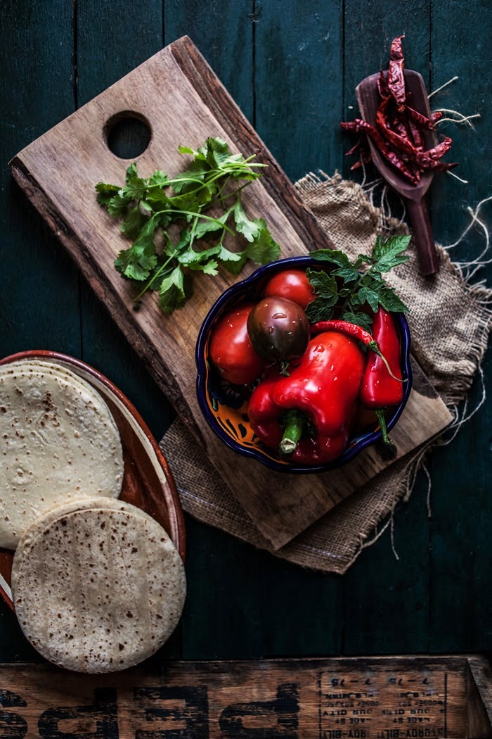 The winter weather left me feeling dilapidated and a bit despondent these past couple weeks. I felt myself shuffling around in a haze, not really knowing why I was feeling so low but not entirely sure how to snap out of it. So this past weekend I did what I usually do when I’m feeling down, and I made comfort food. And not just any comfort food, but Mexican comfort food; the richest, freshest comfort food there is. I did it in hopes that the vibrant colors and warm spicy flavors would bring a little ray of sunshine into my gloomy scape, and they did manage to cheer me up quite a bit, at the very least while I was in the process of making and eating them.