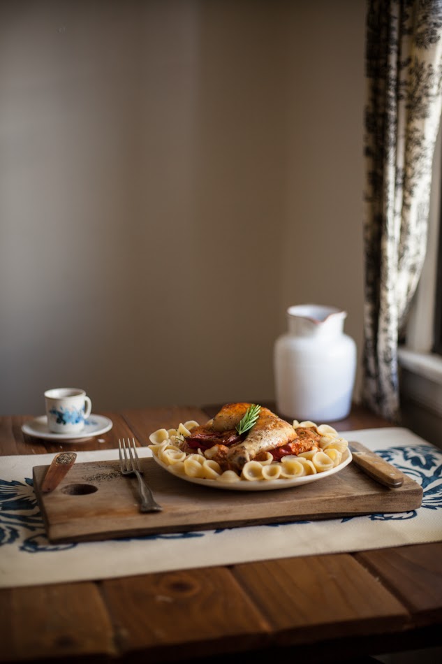Gosh, this story is so beautiful! I've always been drawn to the kitchen, but I couldn't say why. My father is a great cook. My mom and I baked a lot when I was a kid. She worked nights, so I cooked a lot of dinners (from a box!) for my younger siblings growing up. I've longed to make fresh shaped pastas like orecchiette. It's too easy to just roll out the dough and cut it into strings, you know? I love a good culinary challenge. And the roasted sauce and the chicken, too? Girl.