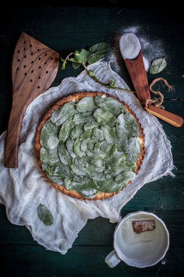 the candied mint leaves are an excellent idea and the make the tart look exceptionally beautiful!